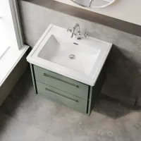 Nuie Deco 610mm Satin Green Wall Hung 2-Drawer Vanity Unit with Mid-Edge Basin