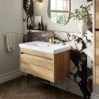 Nuie Havana 600mm Autumn Oak Wall Hung 2 Drawer Vanity Basin Unit With Soft Close Drawers