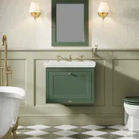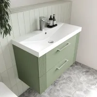Nuie Deco 800mm Satin Green Wall Hung 2-Drawer Vanity Unit & Basin With Chrome Handles
