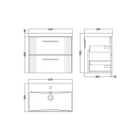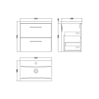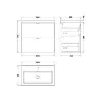 Nuie Arno 600mm Wall Hung 2-Drawer Vanity Unit Including Basin