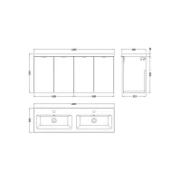 Nuie Arno 1200mm Anthracite Wall Hung 4-Door Vanity Unit with Double Polymarble Basin