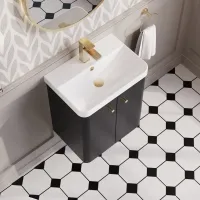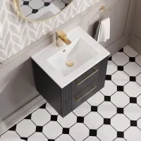 Nuie Deco 500mm 2 Drawer Soft Black Wall Hung Vanity Unit With Minimalist Basin