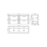 Nuie Deco 1200mm Wall Hung 2-Drawer Vanity & Double Basin With Handles