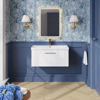 Nuie 800mm Wall Hung Gloss White 1-Drawer Vanity Unit Including Basin