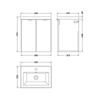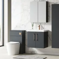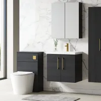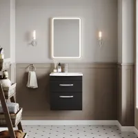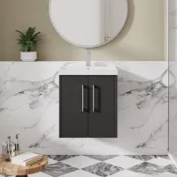 Nuie Arno 600mm Charcoal Black Wall Hung 2-Door Vanity Unit with Basin