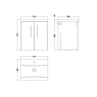 Nuie 600mm Gloss White Wall Hung 2 Door Vanity Unit with Basin and Handles