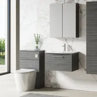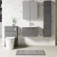 Nuie 600mm Anthracite Woodgrain Wall Hung 1-Drawer Vanity Unit Including Basin