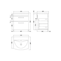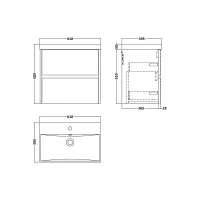 Hudson Reed Fusion 600mm Wall Hung 2 Drawer Vanity Unit & Ceramic Basin With Soft Close Drawers