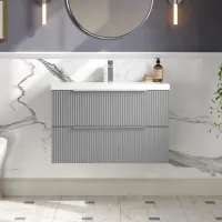 Hudson Reed Fluted 800mm Satin Grey Wall Hung Single Drawer Vanity Unit With Ceramic Basin