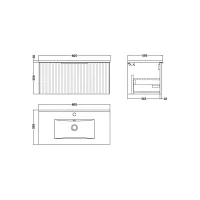 Flume 800mm 2- Drawer Wall Hung Unit with Contemporary Fireclay Basin - 3 Tap Holes