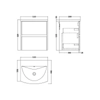 Flume 600mm 2- Drawer Wall Hung Unit withThin-Edge Basin - 1 Tap Hole