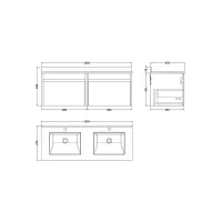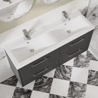 Hudson Reed Fusion 1200mm Gloss Grey Wall Hung 4 Drawer Vanity Unit with Double Polymarble Basin