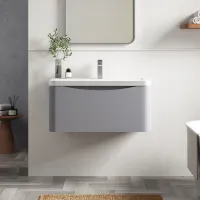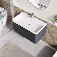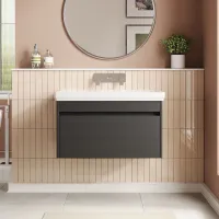 Nuie Lunar Satin Grey 800mm Wall Hung 1 Drawer Unit With Ceramic Basin & 1 Tap Hole