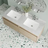 Flume 600mm 2- Drawer Wall Hung Unit with Double Bowl Marble Top 1 Tap Hole in White
