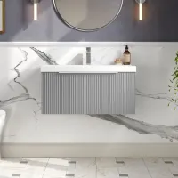 Hudson Reed Fluted 810mm Wall Hung Single Drawer Vanity Unit With Basin