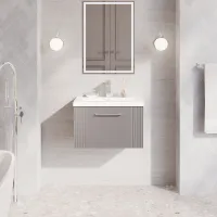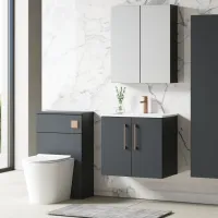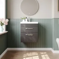 Nuie Arno 600mm Wall Hung Satin Grey 2 Door Vanity Unit with Ceramic Basin