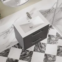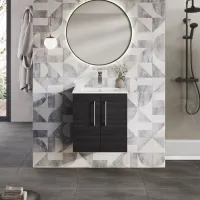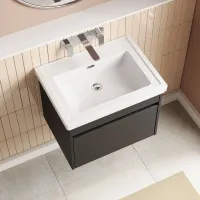 Nuie Athena 600mm Charcoal Black Wall Hung 2 Drawer Vanity Unit With Thin-Edge 1 Tap Hole Basin