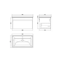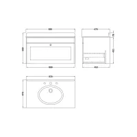 Nuie Classique 800mm Satin White Wall Hung Single Drawer Vanity Unit with 3 Tap Hole Basin