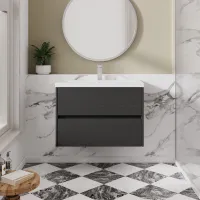 Nuie Athena 800mm Charcoal Black Wall Hung 2 Drawer Vanity Unit With 1 Tap Hole Basin