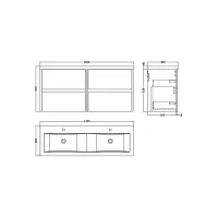 Hudson Reed Fluted 1200mm Wall Hung 2-Drawer Vanity Unit & Double Basin