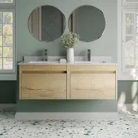 Nuie Havana 1200mm Autumn Oak Wall Hung 4 Drawer Vanity Unit with Double Basin