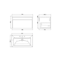 Loftwood 800mm Wall Hung 1 Drawer Unit and 3 Tap Hole Contemporary Basin - Bleached Oak
