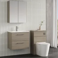 Nuie Arno 600mm Solace Oak Wall Hung 2-Drawer Vanity Unit With Basin