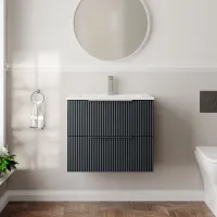Hudson Reed Fluted 800mm Soft Black Wall Hung 2-Drawer Vanity Unit With Basin
