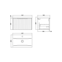 Hudson Reed Fluted 600mm Soft Black Wall Hung 2-Drawer Vanity Unit With Basin