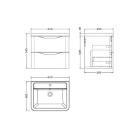 Nuie Lunar 600mm Wall Hung 2 Drawer Vanity Unit with Ceramic Basin