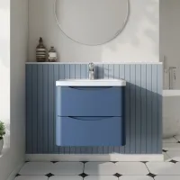 Hudson Reed Fluted Satin Blue 600mm Wall Hung Single Drawer Vanity Unit With Basin