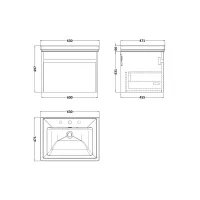 BC Designs Loftwood 600mm Metallic Slate Wall Hung 1 Drawer Unit with 3 Tap Hole Basin