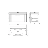 Nuie Classique 800mm Wall Hung 1 Drawer Vanity Unit With 3 Tap Hole Basin