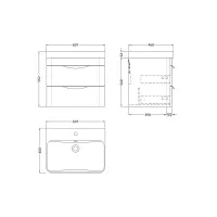 600mm Wall Hung 2-Drawer Vanity & Basin 4