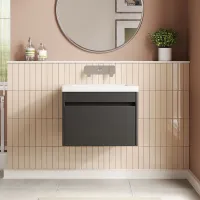 Nuie Arno 600mm Charcoal Black Wall Hung 1-Drawer Vanity Unit & Basin