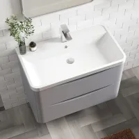 Nuie 800mm Satin White Wall Hung Single Drawer Vanity Unit With Curved Basin & Chrome Handles