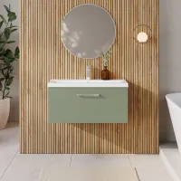 Nuie 800mm Satin Green Wall Hung 1-Drawer Vanity Unit With Basin
