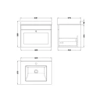 Nuie Classique 600mm Soft Black Wall Hung 1-Drawer Vanity with 3 Tap Hole Basin