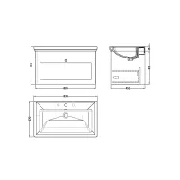 Nuie Classique 800mm 1 Drawer Wall Hung Vanity Unit with 3 Tap Hole Basin
