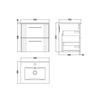 Hudson Reed Fluted 500mm Wall Hung Single Drawer Vanity Unit with Basin