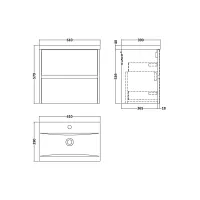 Nuie Lunar 800mm Wall Hung 1 Drawer Unit & Ceramic Basin