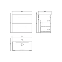 Nuie Arno 600mm Wall Hung 2-Drawer Vanity Unit With Thin-Edge Basin
