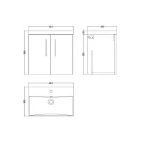 600mm Wall Hung 2-Door Vanity & Basin 3