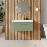Nuie 800mm Satin Green Wall Hung 1-Drawer Vanity Unit with Basin