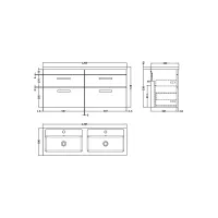 Nuie Athena 1200mm Wall Hung 2 Drawer Vanity Unit With Twin Basin