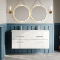 Nuie Athena 1200mm Wall Hung 4 Drawer Soft Close Gloss White Vanity Unit With Twin Basin