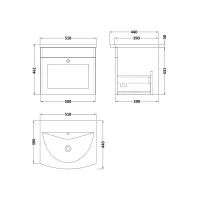 Nuie Classique 500mm Satin White Wall Hung 1 Drawer Vanity Unit With Curved Basin