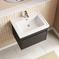 Nuie 600mm Wall Hung Charcoal Black 1-Drawer Vanity Unit With Basin