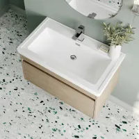 Nuie 800mm Wall Hung Bleached Oak 1-Drawer Vanity Unit Including Basin
