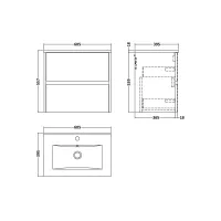 Nuie Havana 600mm Wall Hung 2 Drawer Vanity Unit with Basin
